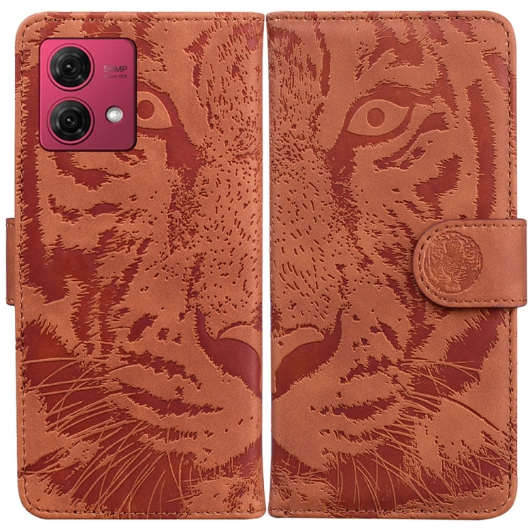 Funda de Cuero para Motorola Moto G84 Tiger Estampado en Relieve (Marrón)