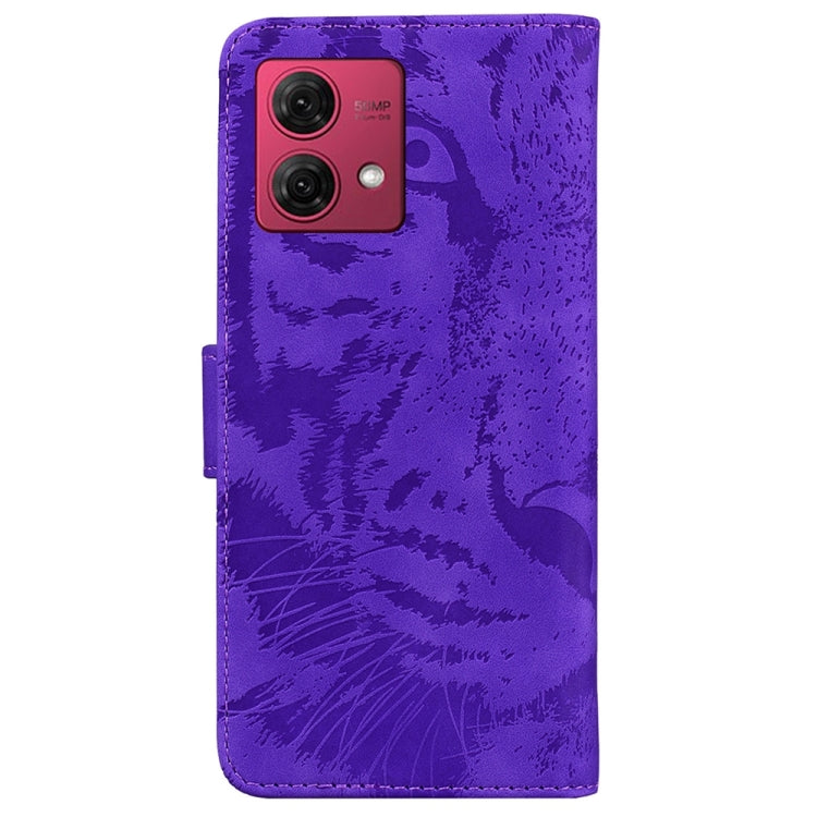 Funda de Cuero para Motorola Moto G84 Tiger con Patrón en Relieve (Púrpura)