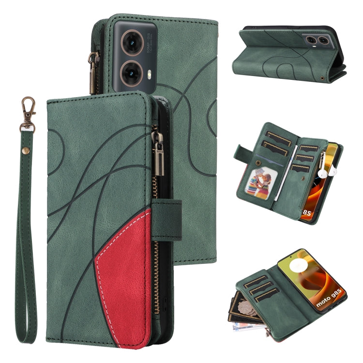 Funda de Cuero para Motorola Moto G85 con Billetera, Cremallera y 9 Ranuras para Tarjetas (Verde)