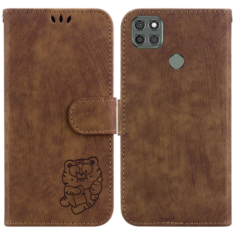Funda de Cuero para Motorola Moto G9 Power Little Tiger en Relieve (Marrón)