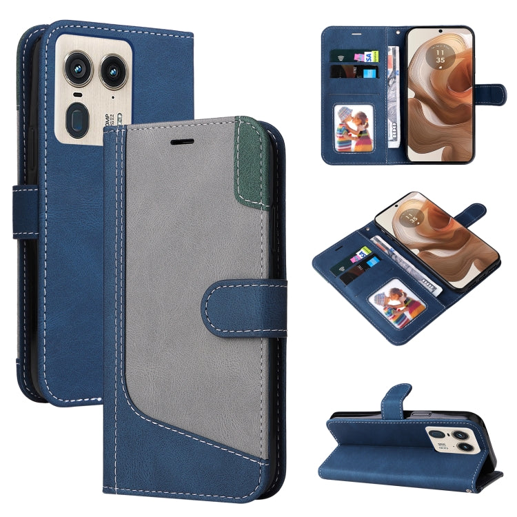 Funda de Cuero para Motorola Moto X50 Ultra con Empalme de Tres Colores (Azul)