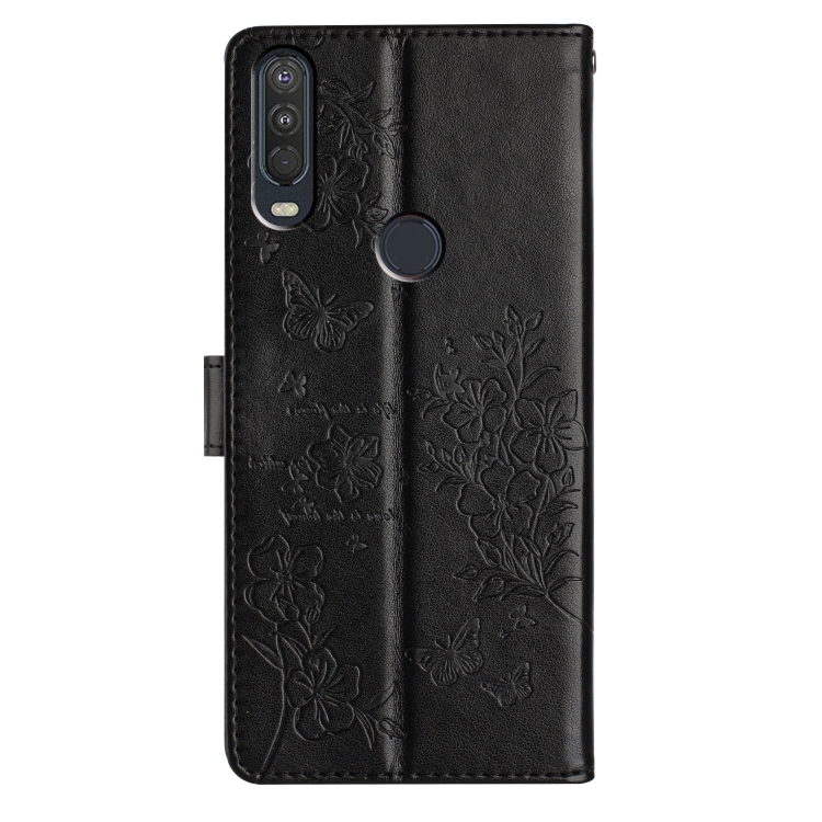 Funda de Cuero para Motorola One Action con Mariposas y Flores (Negro)