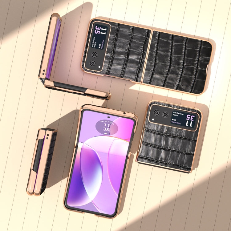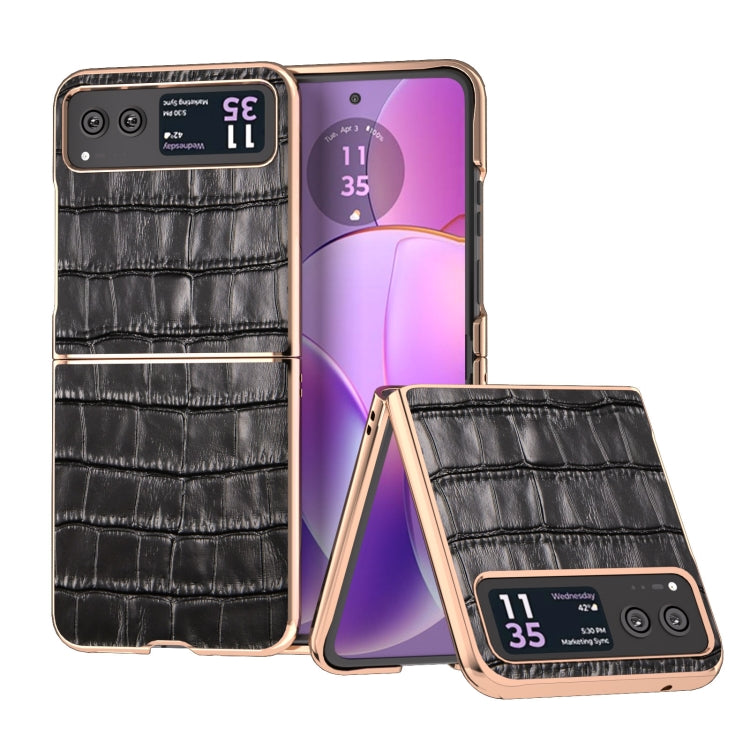 Funda para Motorola Razr 40 con Galvanoplastia de Cuero Genuino y Textura de Cocodrilo (Negro)
