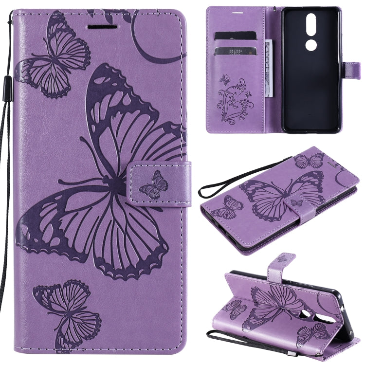 Para Nokia 2.4 3D Mariposas Patrón de relieve Funda de cuero con tapa horizontal con soporte, ranura para tarjeta y billetera (púrpura)