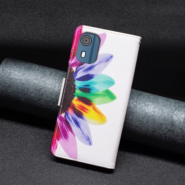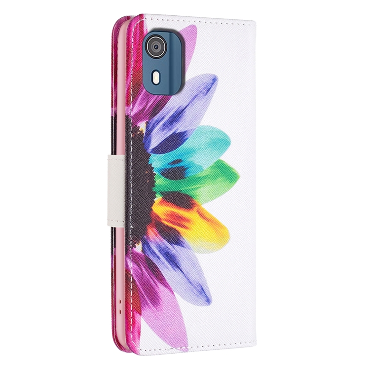 Estuche de Cuero para Nokia C02 con Patrón Dibujo Coloreado (Flor del Sol)