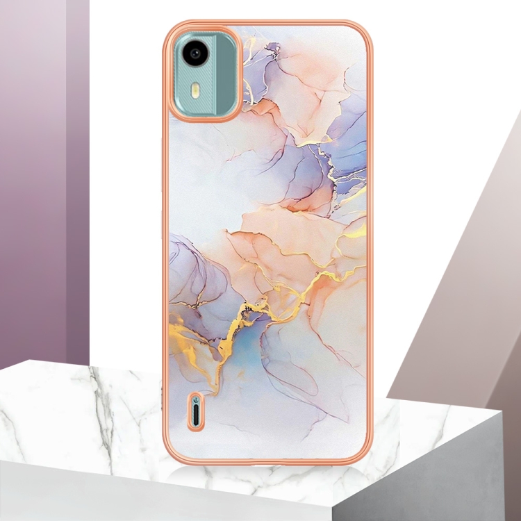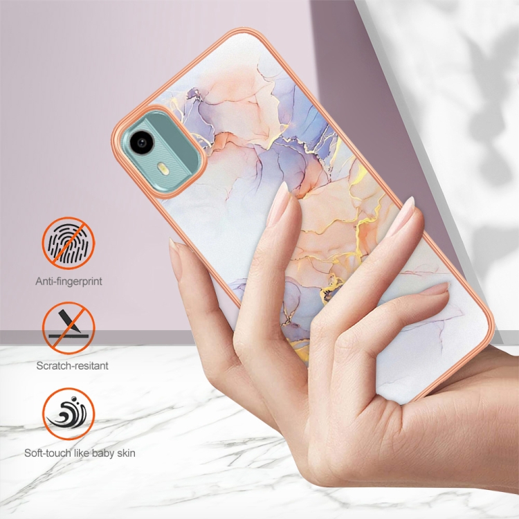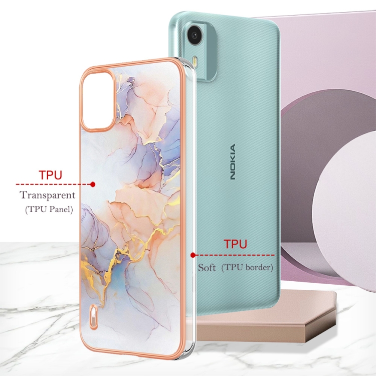 Funda TPU Galvanoplastia Imd para Nokia C12 (Mármol Blanco)