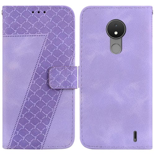 Funda de Teléfono Nokia C21 Cuero En Relieve En Forma de 7 (Púrpura)