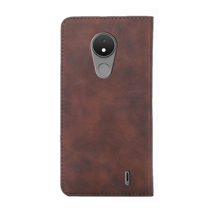 Funda Flip Leather para Nokia C21 Skin Feel Magnetic Horizontic (Marrón Oscuro)