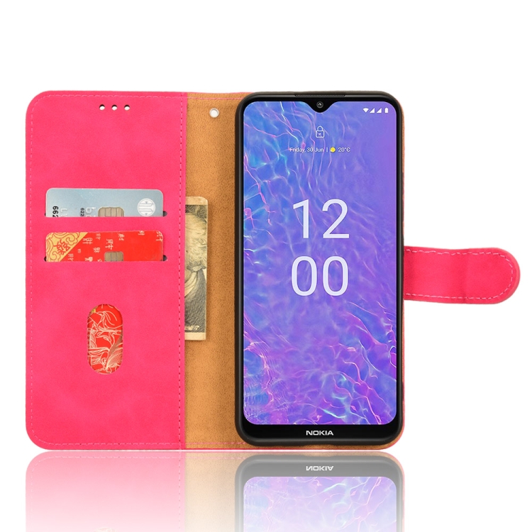 Funda de Cuero para Nokia C210 con Tapa Magnética Skin Feel (Rojo Rosa)