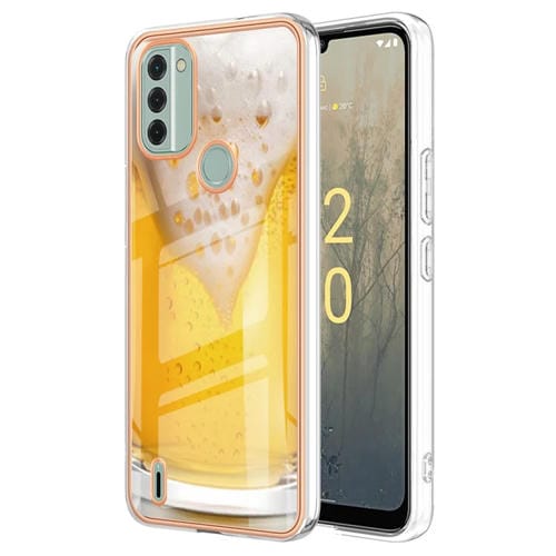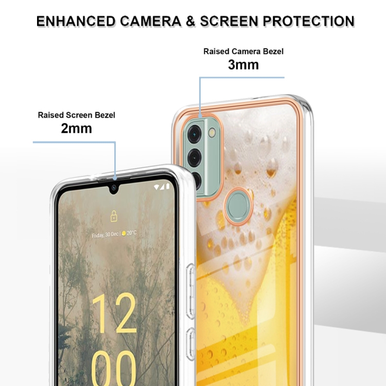 Caja de Teléfono IMD Doble Cara para Nokia C31 (Mármol Galvanizado, Cerveza de Barril)