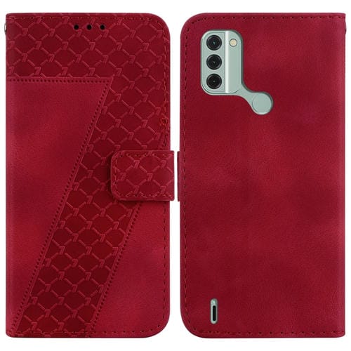 Funda de Cuero En Relieve en Forma de 7 para Nokia C31 (Rojo)