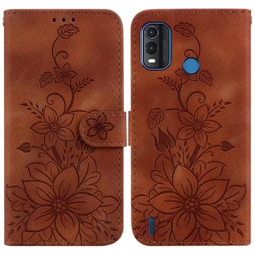 Funda de Cuero para Nokia G11 Plus con Relieve Lily (Marrón)