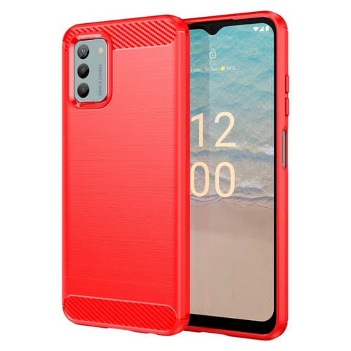 Funda para Nokia G42 de TPU con Textura Cepillada de Fibra de Carbono (Rojo)
