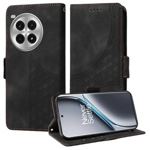 Funda de Cuero para OnePlus Ace 3 Pro con Rombos Estrellados en Relieve (Negro)