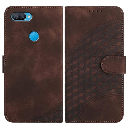 Para Oppo A12 / A7 / A5S Yx0060 Funda de Cuero para Teléfono con Relieve y Cabeza de Elefante con Cordón (Café)