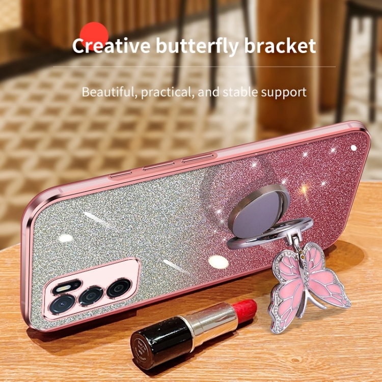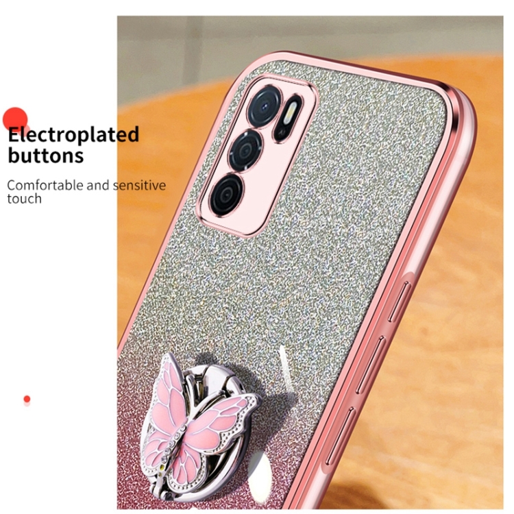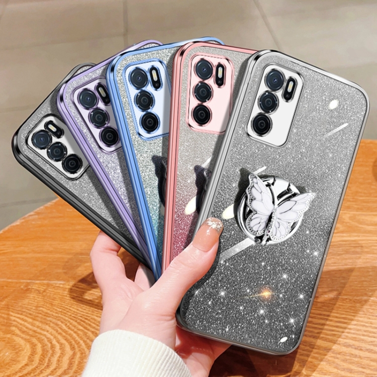 Para Oppo A16 Funda para Teléfono de TPU con Soporte de Mariposa con Brillo Degradado Plateado (Púrpura)