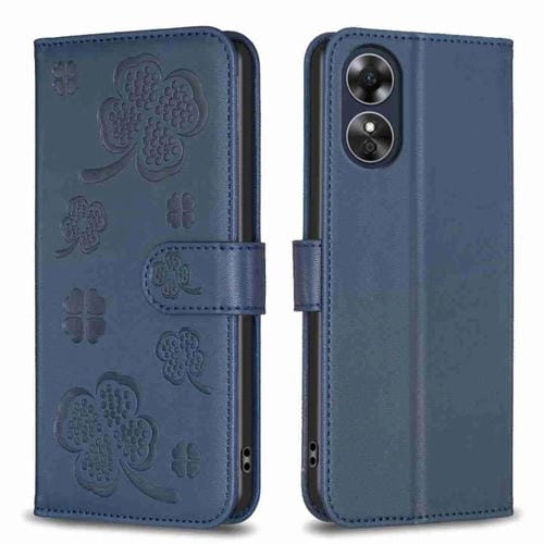 Para Oppo A17 Funda de Cuero con Relieve de Cuatro Hojas (Azul)