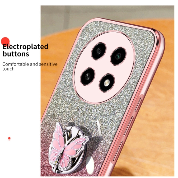 Para Oppo A2 Pro Estuche para Teléfono de TPU con Soporte de Mariposa con Brillo Degradado Plateado (Negro)