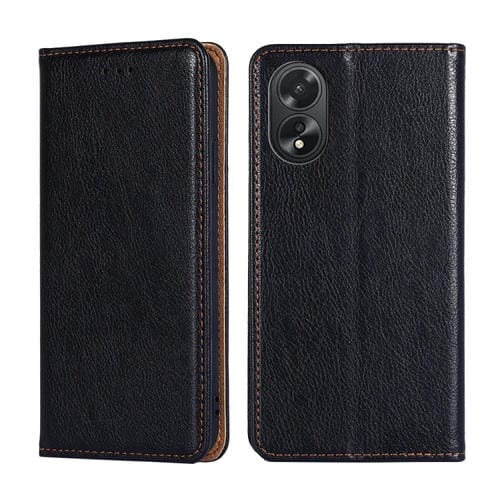 Para Oppo A38 4G / A18 4G Estuche para Teléfono de Cuero Magnético de Color Sólido con Aceite Brillante (Negro)