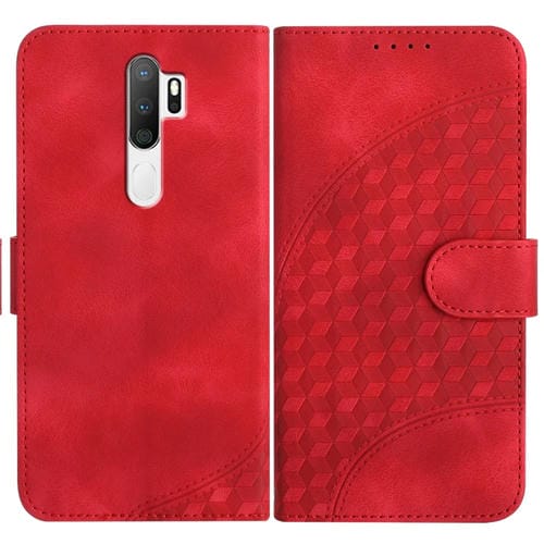Para Oppo A5 2020 / A9 2020 Yx0060 Funda de Cuero para Teléfono con Relieve y Cabeza de Elefante con Cordón (Rojo)
