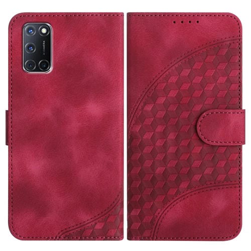 Para Oppo A52 / A72 / A92 Yx0060 Funda de Cuero para Teléfono con Relieve y Cabeza de Elefante con Cordón (Rojo Rosa)