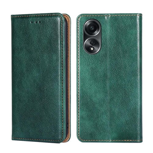 Para Oppo A58 4G Estuche de Teléfono de Cuero Magnético de Color Sólido con Aceite Brillante (Verde)