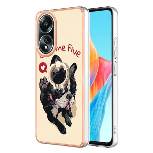 Para Oppo A58 4G Estuche para Teléfono Imd de Doble Cara con Galvanoplastia y Soporte para Anillo (Lucky Dog)