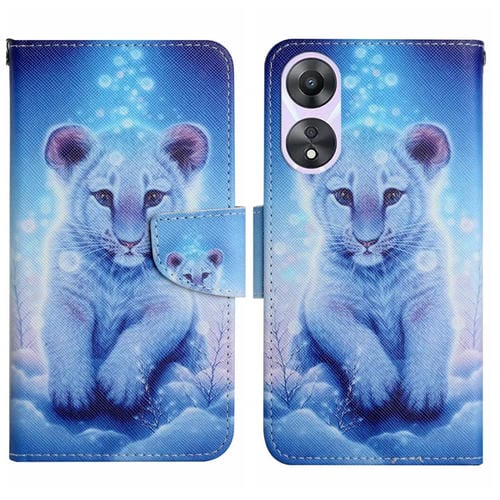Para Oppo A58 4G Funda de Cuero para Teléfono con Patrón de Dibujo Coloreado (Pequeño Leopardo)