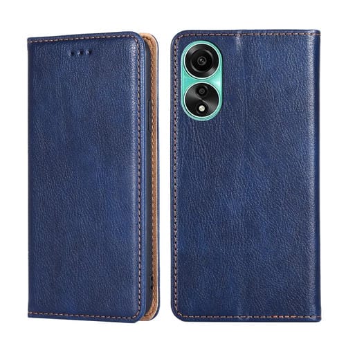 Para Oppo A78 4G Estuche de Teléfono de Cuero Magnético de Color Sólido con Aceite Brillante (Azul)
