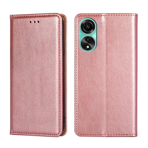 Para Oppo A78 4G Estuche de Teléfono de Cuero Magnético de Color Sólido con Aceite Brillante (Oro Rosa)