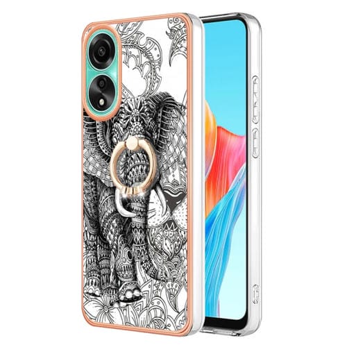 Para Oppo A78 4G Estuche para Teléfono Imd de Doble Cara con Galvanoplastia y Soporte para Anillo (Totem Elephant)