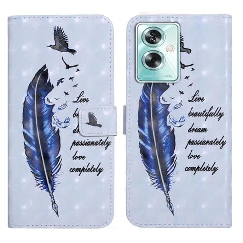 Para Oppo A79 5G Funda de Teléfono de Cuero con Dibujo 3D En Relieve al Óleo (Pluma Azul)
