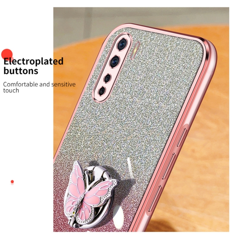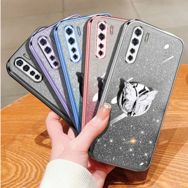 Para Oppo A91 Funda para Teléfono de TPU con Soporte de Mariposa con Brillo Degradado Plateado (Púrpura)