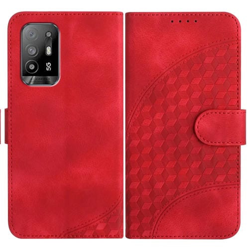 Para Oppo A94 5G / F19 Pro / F19 Pro + 5G / A94 4G Yx0060 Funda de Cuero para Teléfono con Relieve y Cabeza de Elefante con Cordón (Rojo)