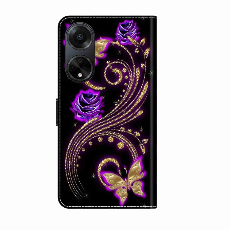 Para Oppo A98 5G Crystal 3D Funda Protectora de Cuero para Teléfono a Prueba de Golpes (Mariposa de Flor Púrpura)