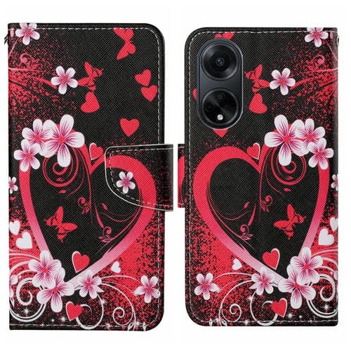 Para Oppo A98 Funda de Cuero para Teléfono con Patrón de Dibujo Coloreado (Corazón Rojo)
