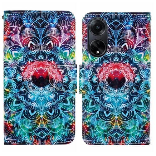 Para Oppo A98 Funda de Cuero para Teléfono con Patrón de Dibujo Coloreado (Mandala)