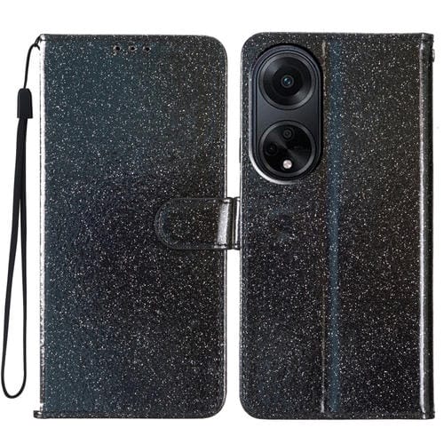 Para Oppo A98 Glitter Powder Flip Funda de Cuero para Teléfono (Negro)