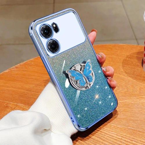 Para Oppo K10 Funda para Teléfono de TPU con Soporte de Mariposa con Brillo Degradado Plateado (Azul Sierra)