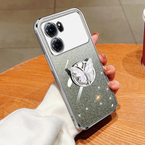 Para Oppo K10 Funda para Teléfono de TPU con Soporte de Mariposa con Brillo Degradado Plateado (Plata)