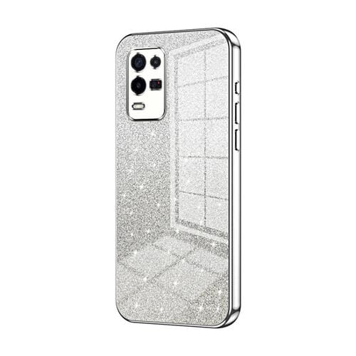 Para Oppo K9X Estuche para Teléfono Galvanizado con Polvo de Brillo Degradado (Plata)
