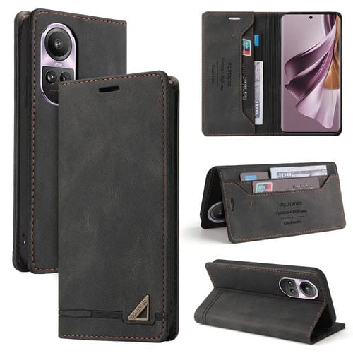 Para Oppo Reno10 Global Skin Feel Funda de Cuero con Tapa Horizontal con Cepillo Antirrobo y Soporte (Negro)