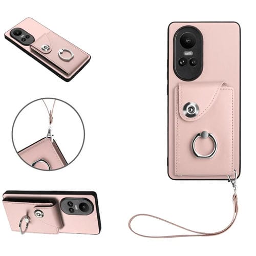 Para Oppo Reno10 / Reno10 Pro Global Organ Card Bag Ring Holder Funda para Teléfono Pu con Cordón (Rosa)