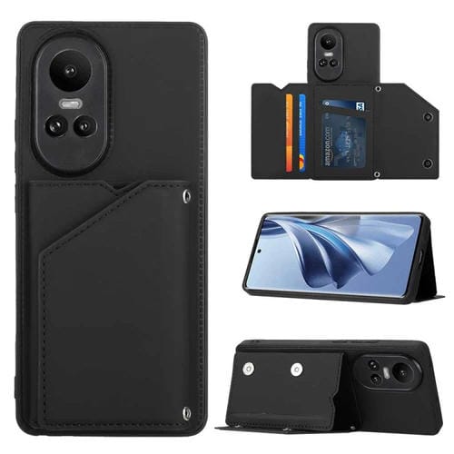 Para Oppo Reno10 / Reno10 Pro Global Skin Feel Pu + TPU + Funda para Teléfono con Ranuras para Tarjetas de PC (Negro)