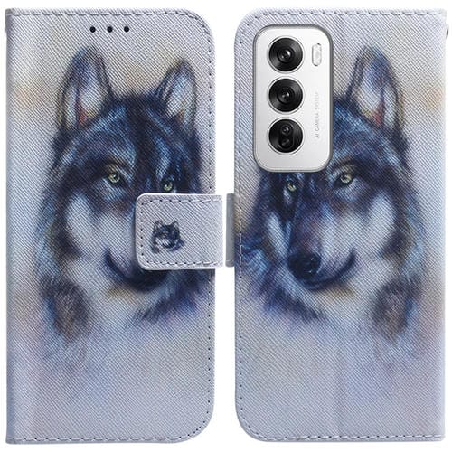 Para Oppo Reno12 5G Funda de Teléfono de Cuero con Tapa con Dibujo Coloreado Global (Lobo Blanco)