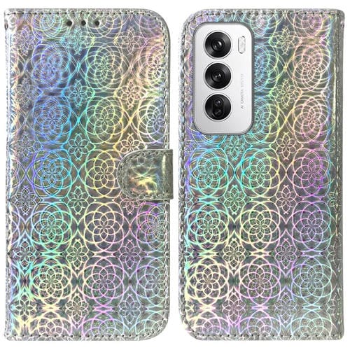 Para Oppo Reno12 5G Global Funda de Teléfono de Cuero con Hebilla Magnética Colorida (Plata)