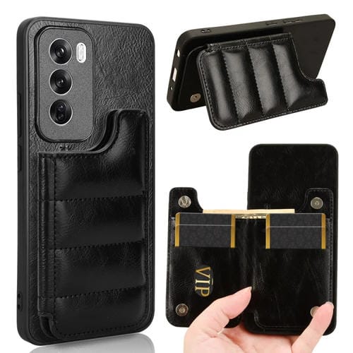 Para Oppo Reno12 Pro 5G Funda para Teléfono con Bolsa para Tarjetas de Costura con Patrón de Vaca Global (Negro)