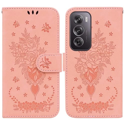 Para Oppo Reno12 Pro 5G Global Butterfly Rose Funda de Cuero para Teléfono En Relieve (Rosa)