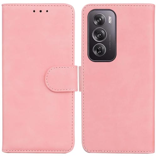 Pour OPPO Reno12 Pro 5G Global Skin Feel Étui de téléphone en cuir à rabat de couleur pure (rose)