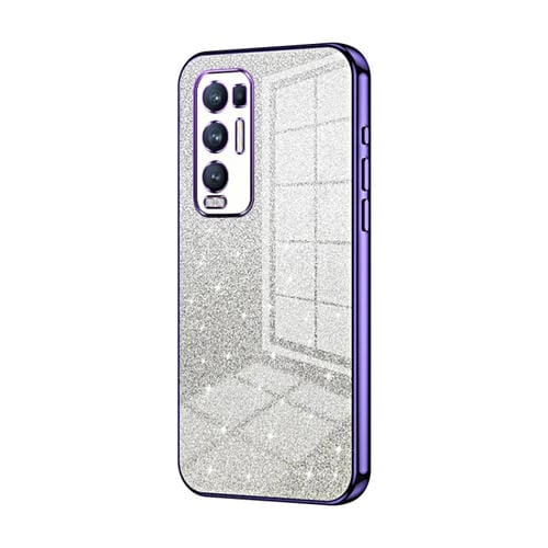 Para Oppo Reno5 Pro + Estuche para Teléfono Galvanizado con Polvo de Brillo Degradado (Púrpura)